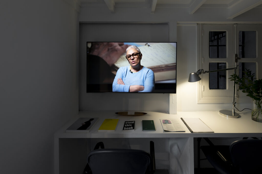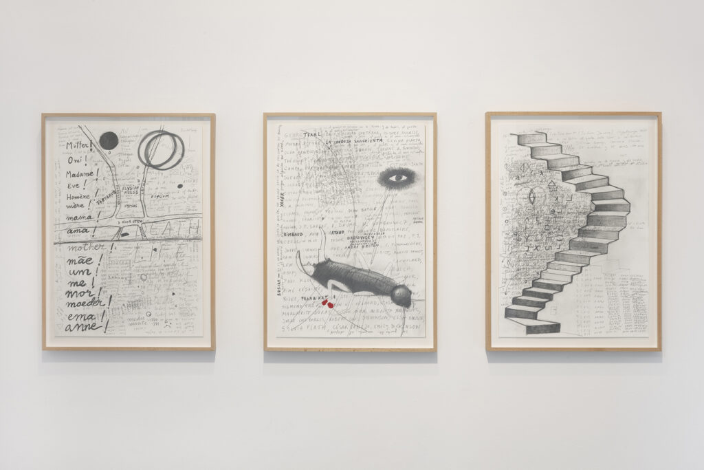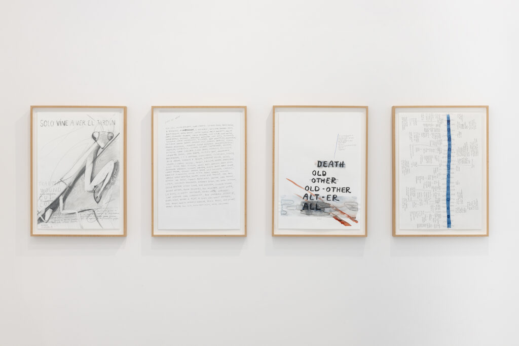 Pero, una vez más, la práctica de García no es lúdica ni teórica, sino más bien poderosa y persistentemente empática, y algo mucho menos juguetón o abstruso impregna Walter Benjamin ha muerto: a saber, un espíritu de decepción, de desilusión, de desencanto, posiblemente de desesperación. Esto se hace explícito en el conjunto de obras tituladas colectivamente Cartas del desencanto, en las que García se inspira en expresiones privadas de decepción en los diarios y la correspondencia privada de las tres protagonistas femeninas de la exposición, mujeres radicalmente comprometidas y políticamente activas que abrazaron con esperanzas y sueños al Ángel de la Historia y quedaron, individual y colectivamente, destrozadas por su inevitable vuelo. Walter Benjamin ha muerto (pasado perfecto), y por lo tanto Walter Benjamin está (presente) y seguirá (futuro) muerto. Lo mismo ocurre con las esperanzas y los sueños. El presente es todo menos perfecto. Y, sin embargo, también pertenece al futuro.