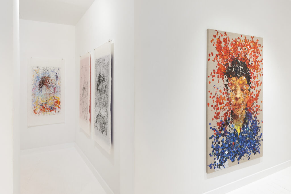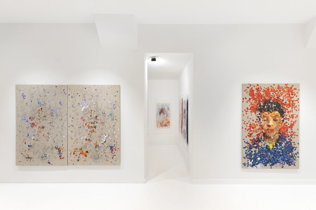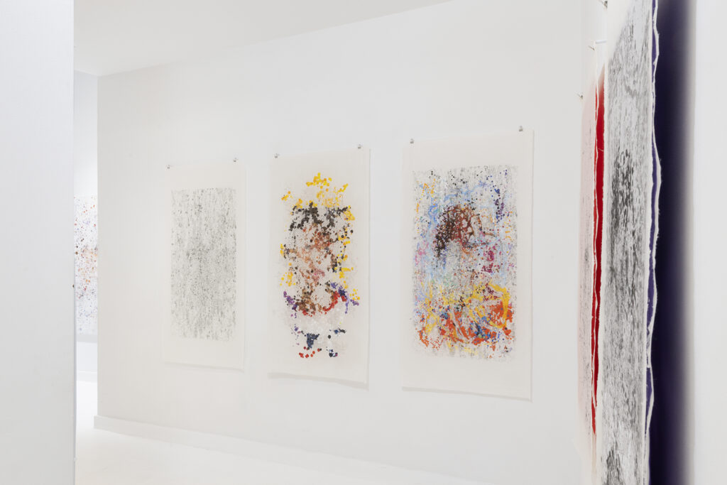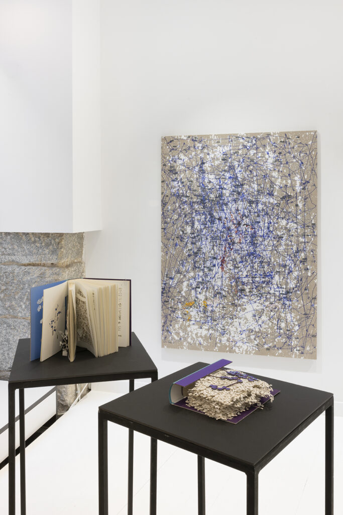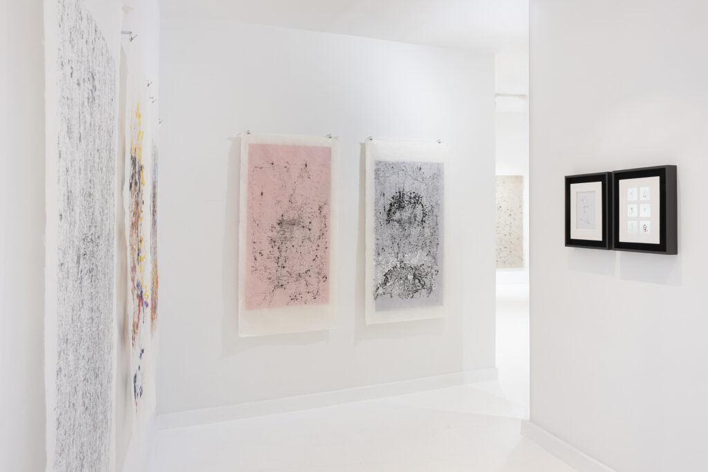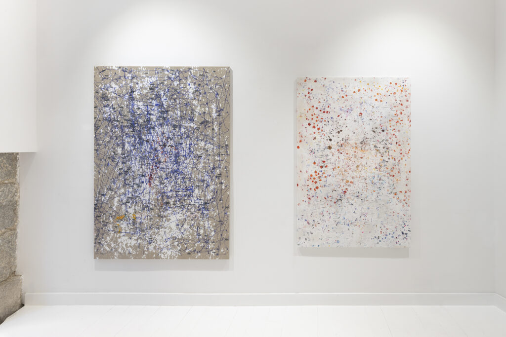 We do not see with the eye the emotional and visual memories necessary to maintain latent images that allow us to believe that images have continuity. The speed at which the retina-brain system captures images (30 images per second) and the cinematic workings of the eye, its movements and trajectory, which the eye’s expressiveness suggests, is the field where these artists observe the operations of the eye, recording its position at a speed of 2,000 data points per second. This recording speed allows them to know the history of each glance. This means being able to follow the history of the eye through the 2,000 micro-fractions per second that are obtained as data at the same time that our mind is capable of processing the 30 images per second offered by the retina. The observation of the vitality of the eye, its movements, its dynamism in the infra-time that occurs between each of these 30 retinal impulses that make up a second of our vision generates a vast field of data with which to compose the landscapes from which the images selected by these neuroscientist-artists emerge to offer us these liberating planes that make up their paintings. Each of their paintings, drawings, and videos, in addition to their intrinsic beauty, allows us to understand the impermanence of reality, the dizzying succession of data that make up the images to which we attribute qualities such as solidity, permanence, and eternity.